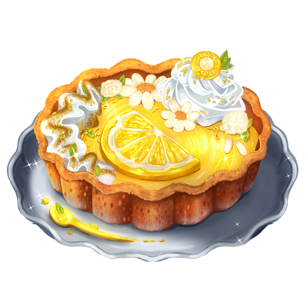 Ingredients: Lemon, edible flower, shortcrust pastry, butter and meringue.