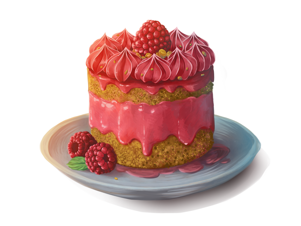 Ingredients: Quatre-Quart batter, powdered sugar, almond, wihpped cream, mint and seasonal fruits.